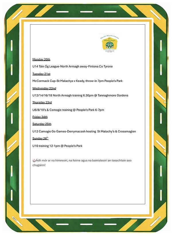 See attached for weekly fixtures. Please keep eye...